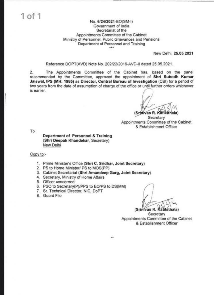 Subodh Kumar Jaiswal (1985 batch) Maharashtra cadre IPS officer is the new CBI Director. India News 5 years ago Share